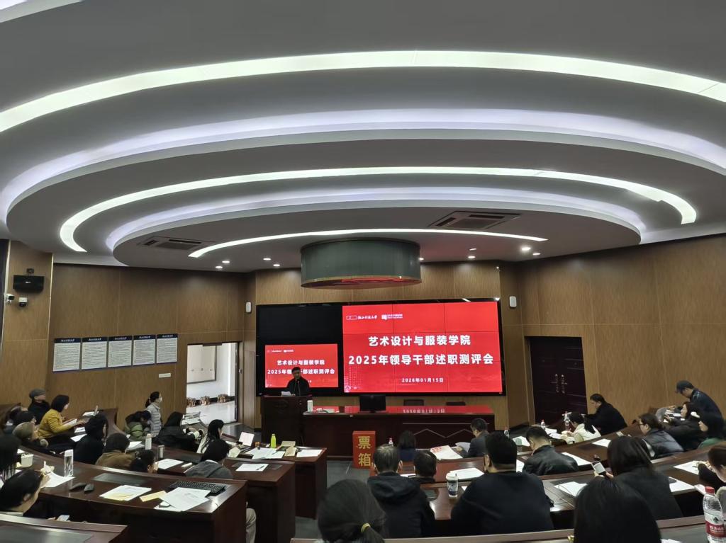 为全面总结学院2025年度各项工作,进一步统一思想、凝聚共识,明确新一年发展目标与方向,1月15日中午,艺术设计与服装学院在B4-102召开全院大会暨领导干部述职会议。会议由学院党委书记蒋邢飞主持,学校审计处田锦处长到会指导,全体教职工参加会议。